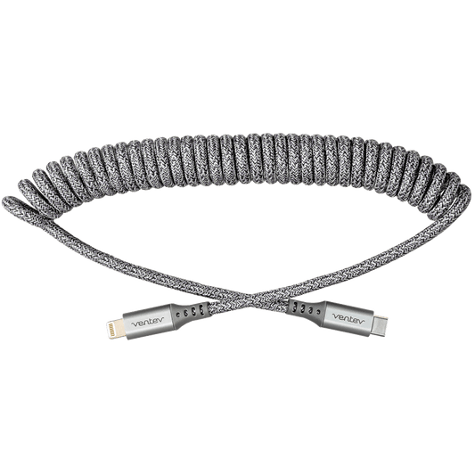 Ventev chargesync helix coiled USB C to Apple Lightning Cable 3ft Gray by Ventev